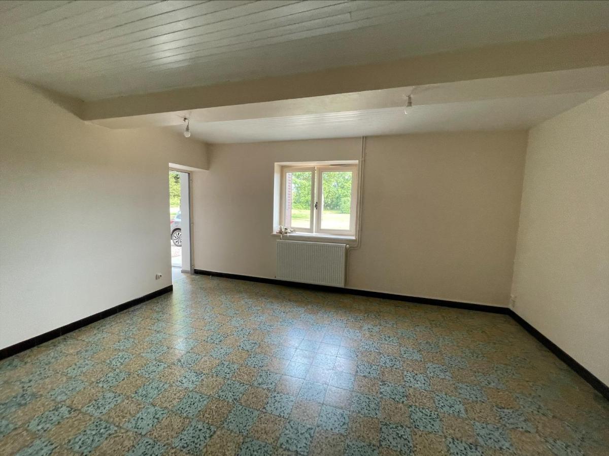 RDC: hall d’entrée, cuisine, salon et salle à manger, deux chambres (placards), salle d’eau (douche), wc séparé. Ancienne écurie, étable et hangar (garage) attenants.