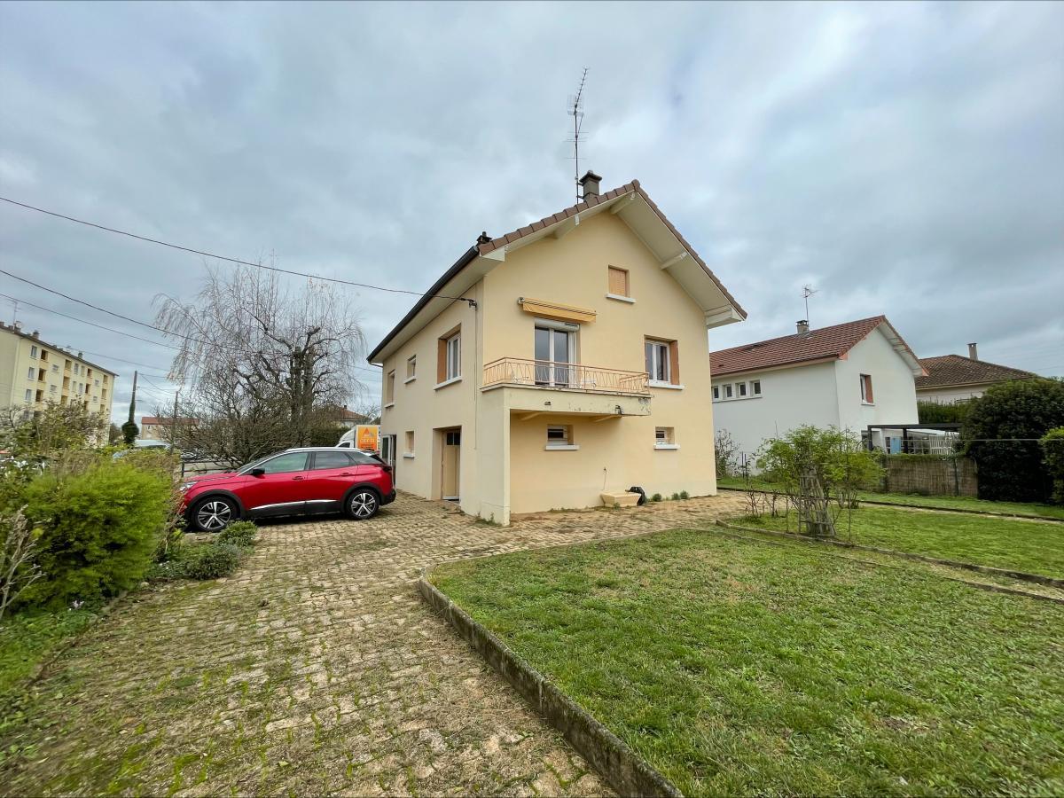 ETAGE : hall, cuisine ouverte sur pièce à vivre et donnant sur balcon, 3 chambres, salle de bains, wc séparé.